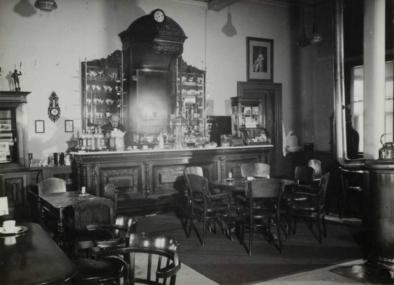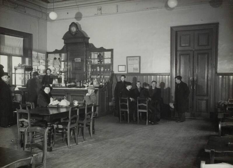Stationsrestauratie Bergen op Zoom in 1941. Links wachtkamer 1e - 2e klasse en rechts wachtkamer 3e klasse. Foto collectie Spoorwegmuseum. Bron: https://geheugen.delpher.nl