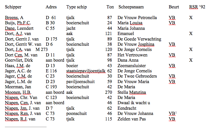 Wanneer we alleen vergelijken met het aantal schippers die in 1871-1873 patentbelasting betalen merken we dat er in 1890-1892 een flinke achteruitgang in aantal is. Nu geen 54 schepen maar slechts 40. Het beeld is vertekend omdat er schepen ontbreken die wel in de Rijnschepenregisters voorkomen. Omgekeerd komen er wel schepen voor in het Rijnschepenregister die geen Rijnschepen zijn. Zij worden daar aangeduid met de term Binnenlands Patent.