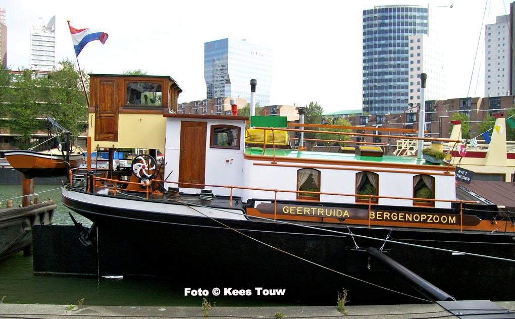 Midden De Geertruida in de Leuvehaven te Rotterdam. Onder een kijkje in de roef.