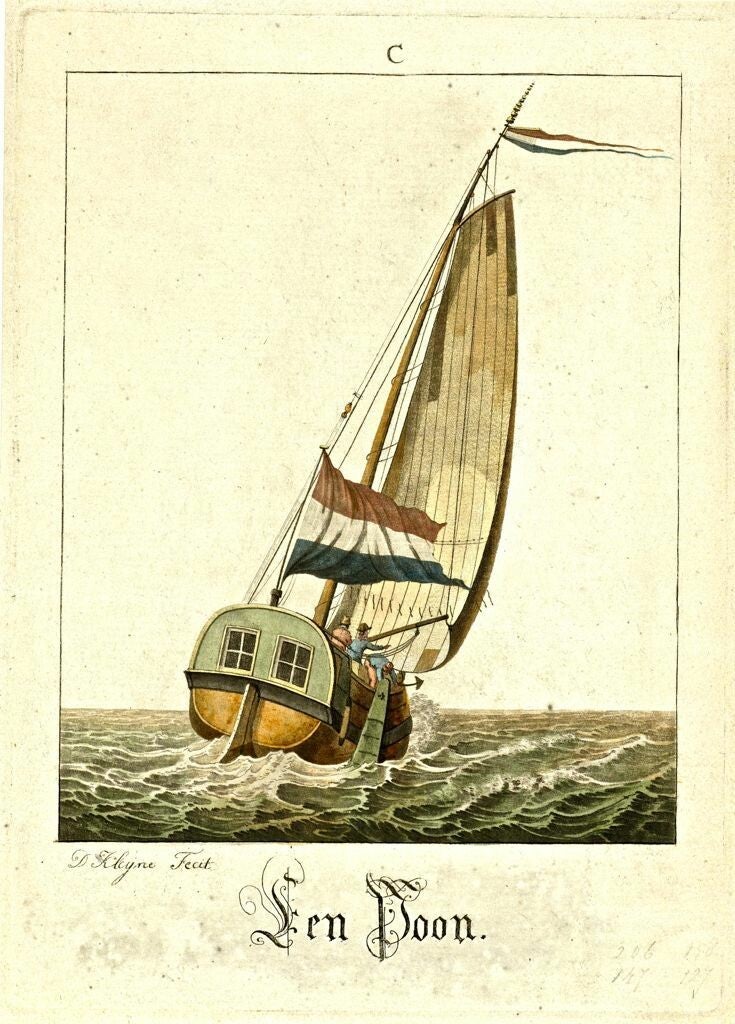 Ets aquatint van David Kleyne (1763-1805) Omschrijving: Poon op open water. Collectie Rijksmuseum Amsterdam. Obj,nr, RP-P-1885-A-9136.[1]